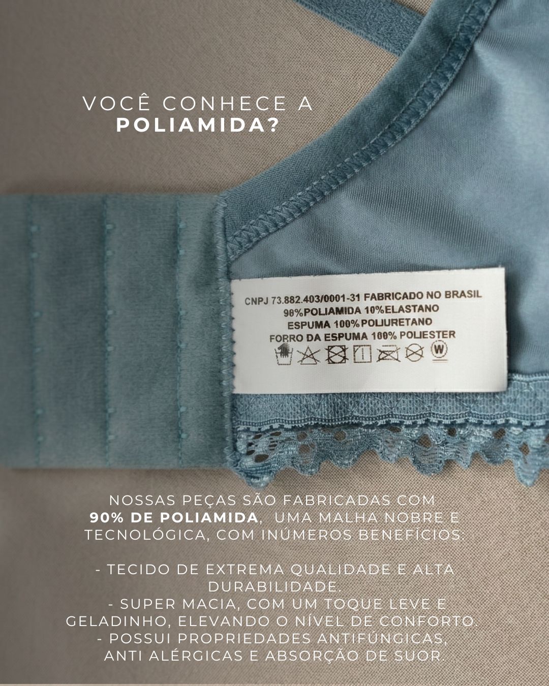Uma verdadeira segunda pele. Malha inteligente com toque sedoso, alta elasticidade que não deforma com o tempo e extrema respirabilidade para manter você seca e confortável.